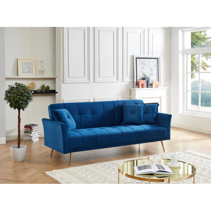 Canapé AROMA Droit Et Convertible En Velours Bleu