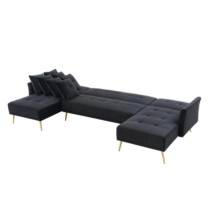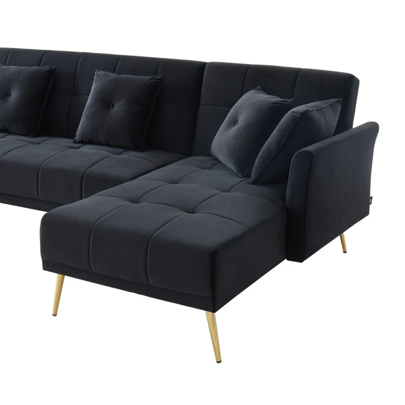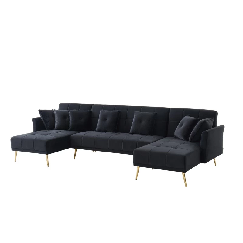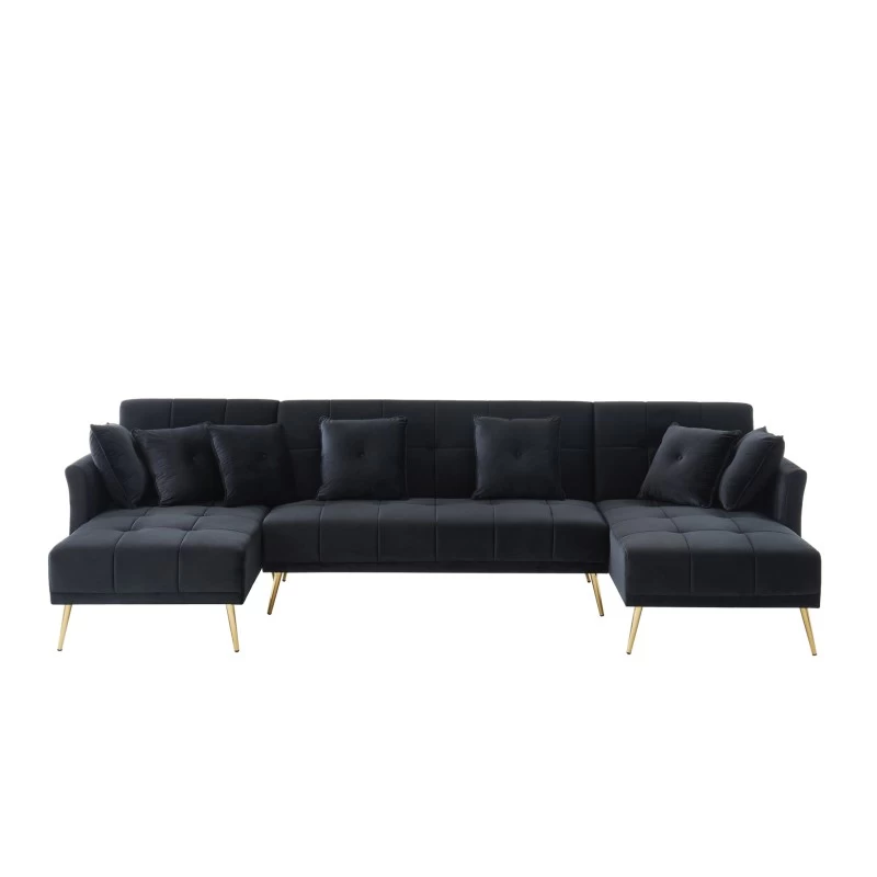 Pour un intérieur chic et élégant craquez pour le canapé panoramique AROMA 6 places ! Laissez vous séduire par ses détails capitonnés, ses pieds dorés et son velours.