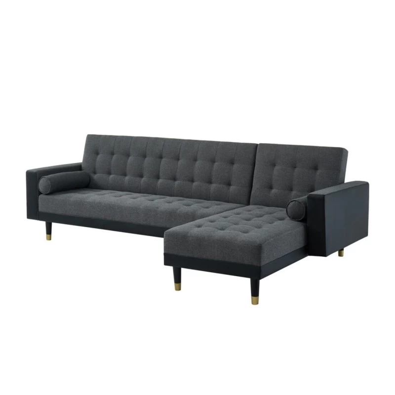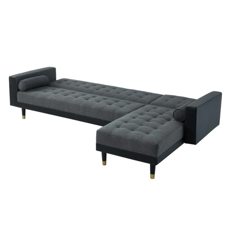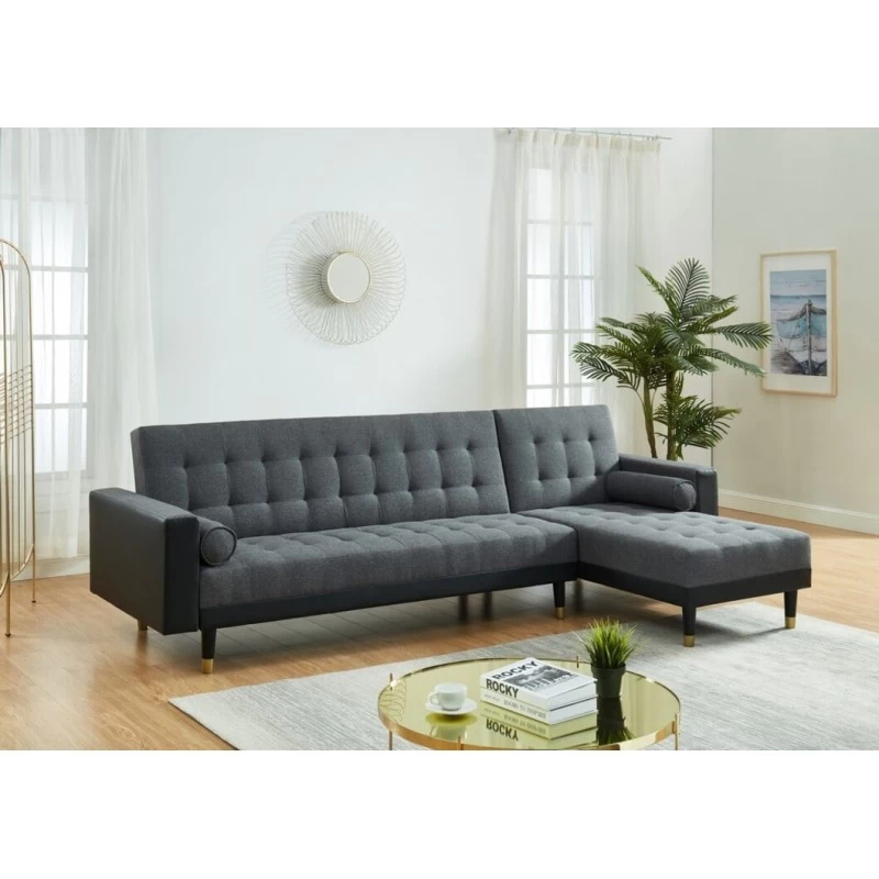 Canapé D’angle 4 Places LUXURY Tissu Gris/PU Noir -Pieds Gold Angle Réversible – Convertible