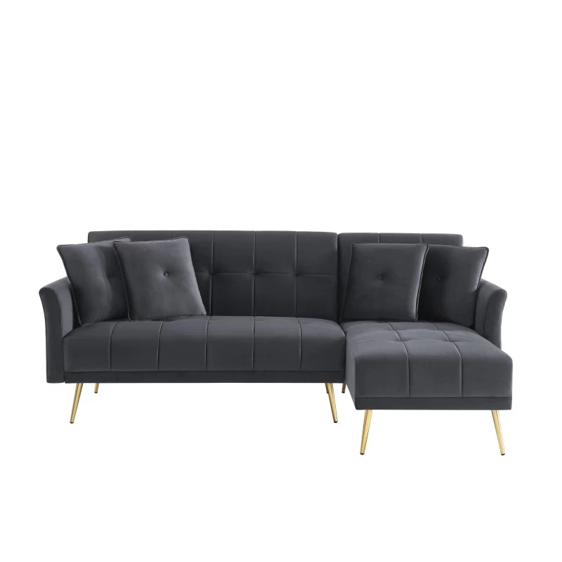 Le canapé design et confortable AROMA habillera avec élégance votre salon. Look chic et tendance avec ses pieds dorés et son revêtement en velours, il est l’allié d’une décoration raffinée. Son aspect capitonné souligné par le passepoil des coussins lui donne du caractère et de l’allure.