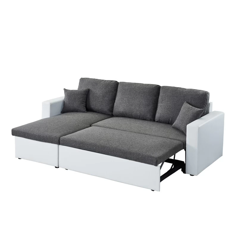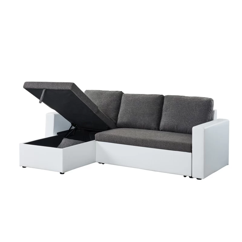 Le canapé d’angle convertible ASPEN est idéal pour vos soirées cocooning grâce à son confort et son aspect douillet. Il est aussi facilement modulable et s’adapte à votre espace de vie. Son coffre de rangement vous permettra d’y stocker couvertures et coussins pour une nuit improvisée. Vous apprécierez son style bicolore jouant sur les contrastes pour un canapé de caractère.