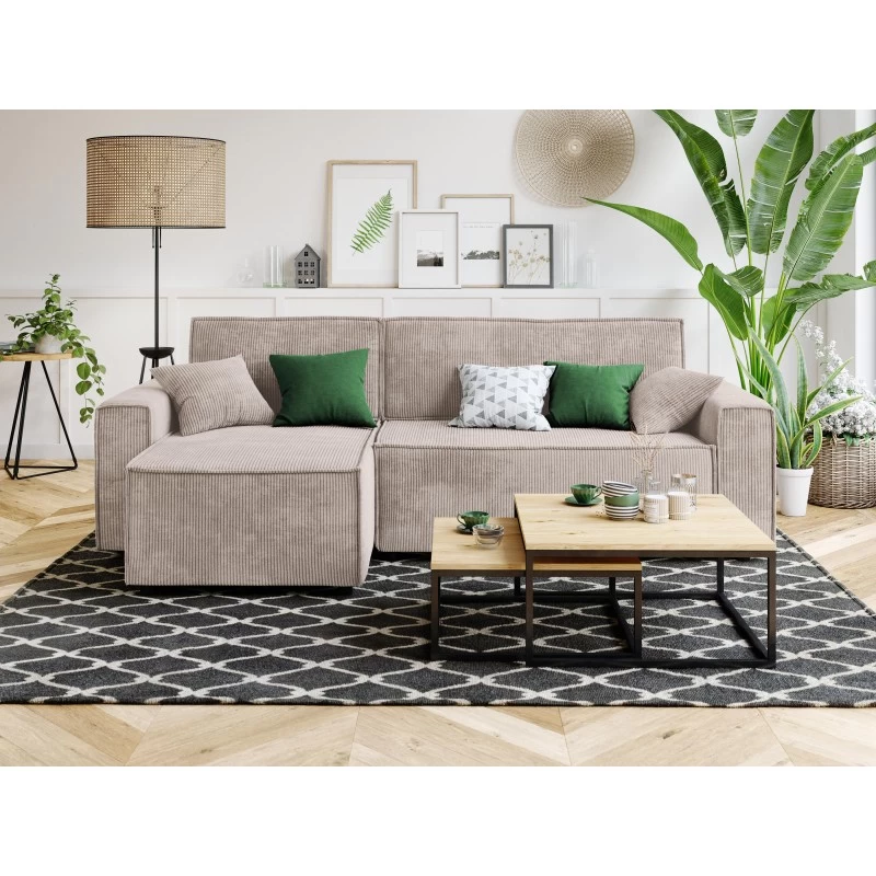 Canapé D’angle MIRA Convertible Et Réversible Velours Côtelé Grège