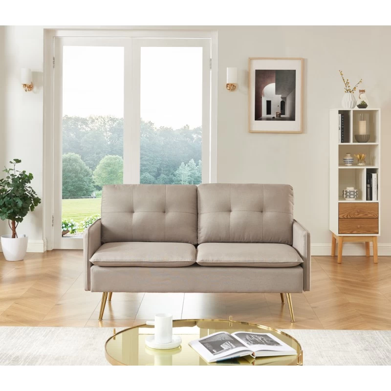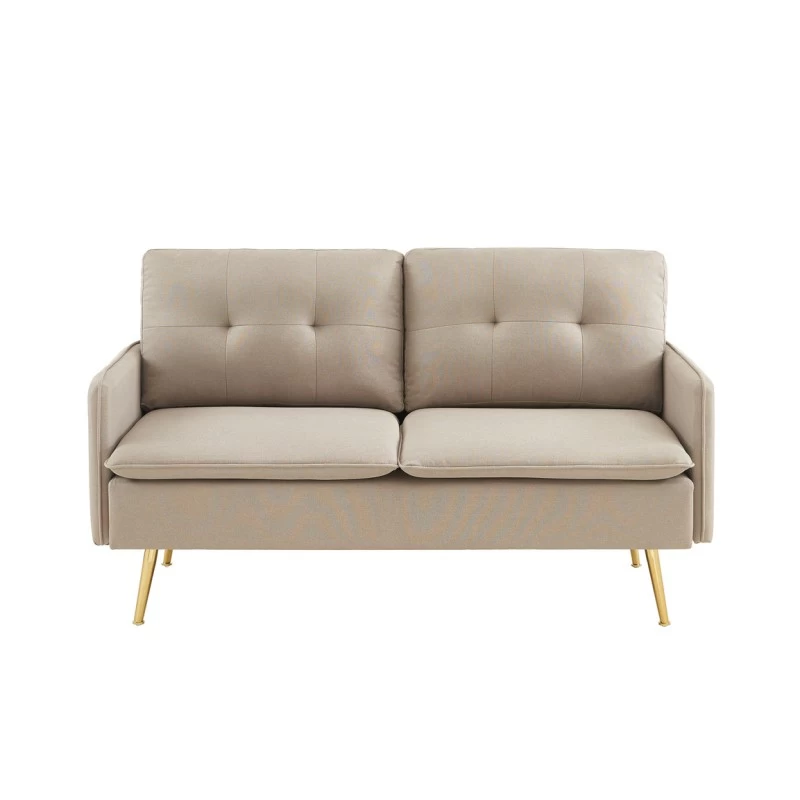 Avec son revêtement en tissu grège le canapé 2 places ADAM a tout pour plaire ! Son piètement très en vogue en métal doré apportera une touche d’élégance à votre intérieur. N’hésitez plus et laissez-vous séduire par l’association du tissu et du métal qui créeront une ambiance vintage.