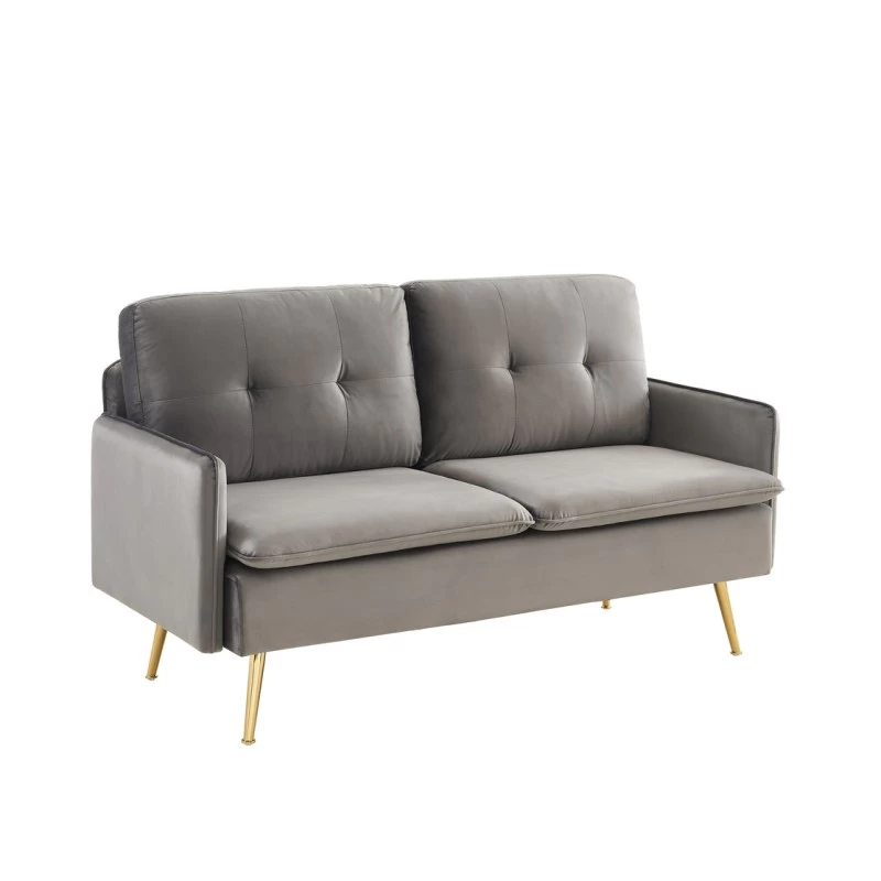 Avec son revêtement en velours anthracite le canapé 2 places ADAM a tout pour plaire ! Son piètement très en vogue en métal doré apportera une touche d’élégance à votre intérieur. N’hésitez plus et laissez-vous séduire par l’association du velours et du métal qui créeront une ambiance vintage.