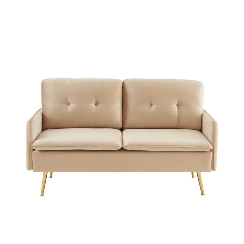 Avec son revêtement en velours beige le canapé 2 places ADAM a tout pour plaire ! Son piètement très en vogue en métal doré apportera une touche d’élégance à votre intérieur. N’hésitez plus et laissez-vous séduire par l’association du velours et du métal qui créeront une ambiance vintage.