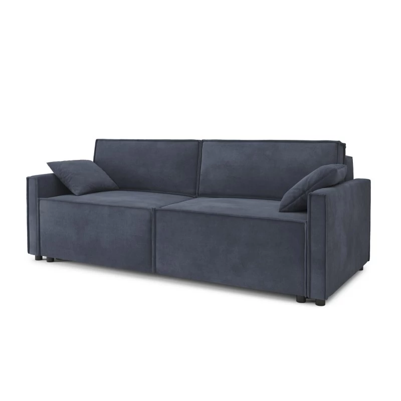 Son revêtement en tissu, ses accoudoirs carrés et son format généreux sont ses vrais atouts tendance.