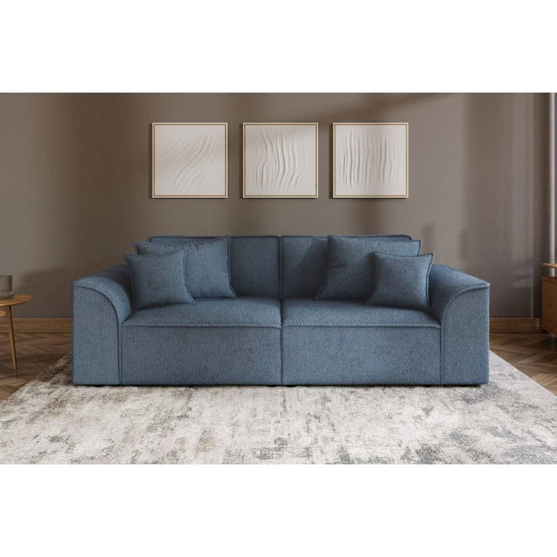 Canapé Droit MARTY Fixe Tissu Bouclette Bleu Gris 3 Places