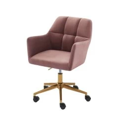 Fauteuil De Bureau MONACO En Velours Rouille Avec Pieds Dorés