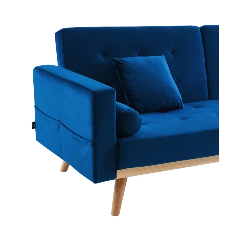 Le canapé KELLY est accompagné de deux coussins carrés et de deux coussins cale-reins de forme cylindrique qui vous seront très utiles pour profiter de la fonction couchage qu’offre ce canapé. Des pochettes de rangement intégrées dans les accoudoirs vous permettront d’y glisser magazines et journaux.