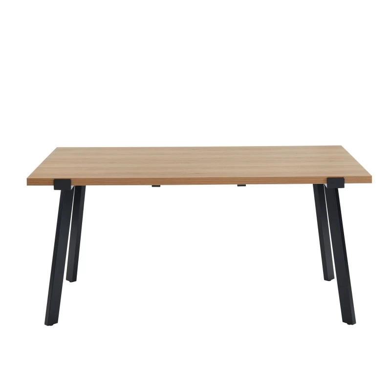 – Table : plateau en MDF et mélaminé effet chêne, pieds en métal noir