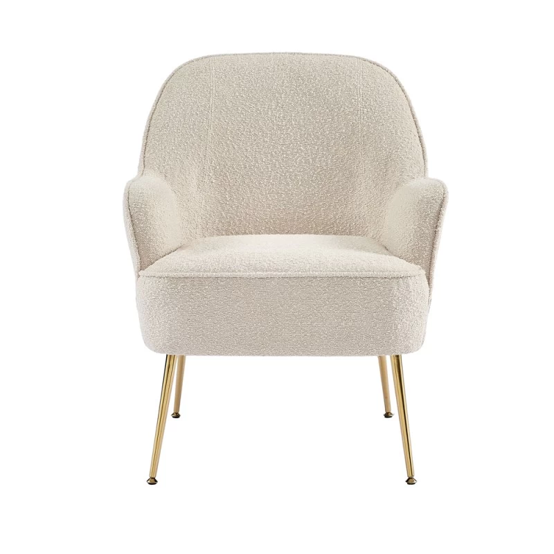 Fauteuil MARCELINO En Tissu Bouclette Beige Avec Piètement Doré
