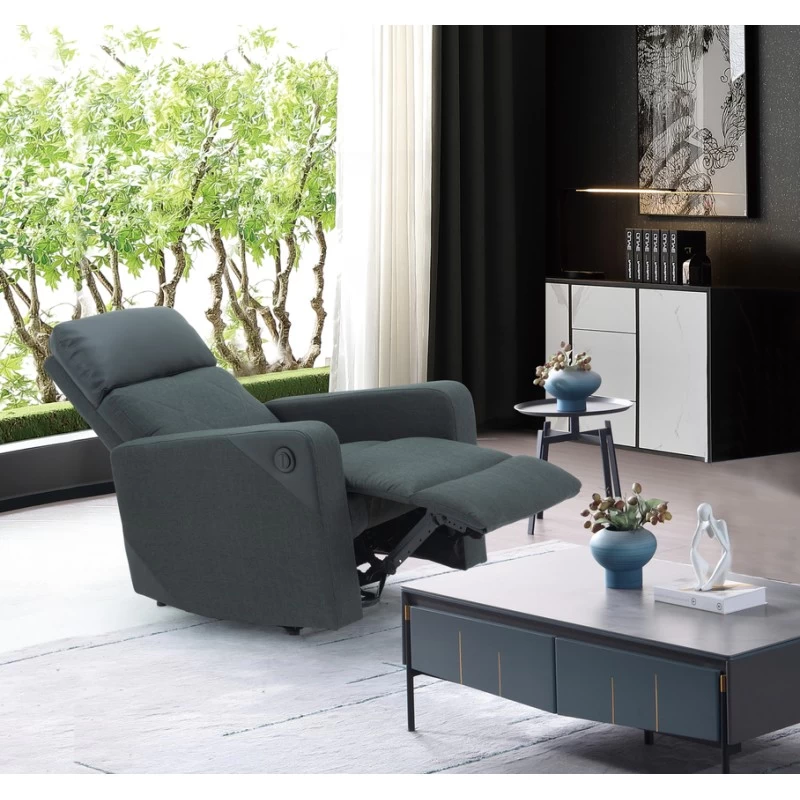 Avec son revêtement en PU noir et tissu gris il s’accordera parfaitement avec la décoration de votre intérieur. Avec sa fonction électrique profitez d’un moment détente dans le fauteuil relax.
