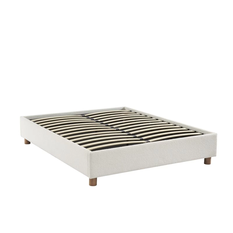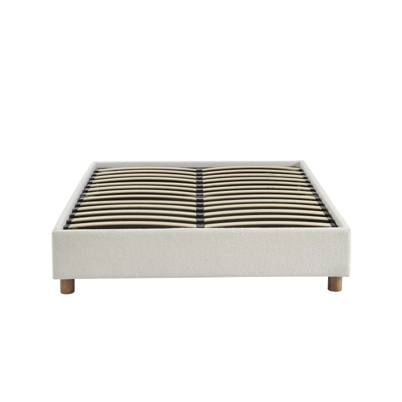 En plus d’être pratique, on craque pour son revêtement en tissu bouclette ultra tendance en ce moment ! La touche en plus de ce lit coffre ? Ses pieds en frêne massif arrondis, modernes et naturels.
