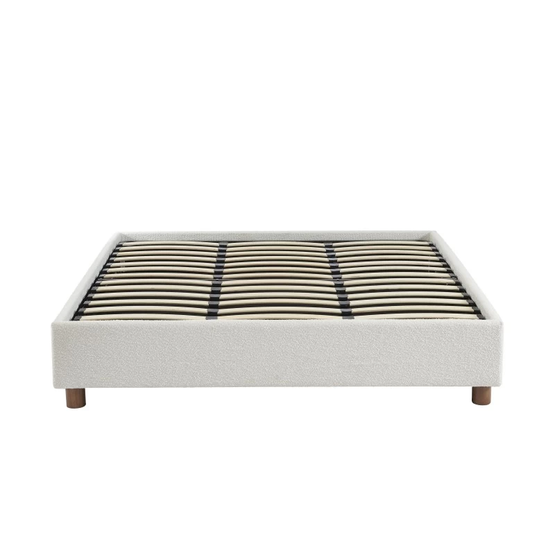 Lit Coffre KORALL Tissu Bouclette écru 180×200 Sommier Inclus