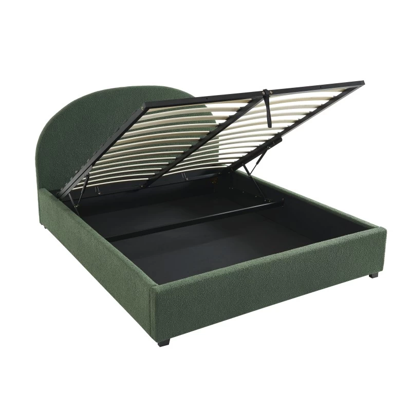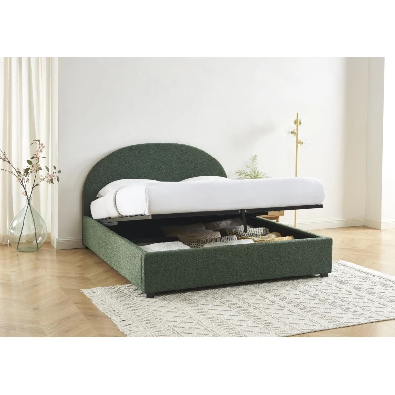 Laissez-vous tenter par ce magnifique lit coffre OLAF ! Avec sa tête de lit et son cadre en tissu bouclette, ce dernier ajoutera une vraie touche tendance à votre chambre à coucher. Son coloris vert forêt, à la fois chic et simple, ira avec n’importe quel style de décoration et de meubles.