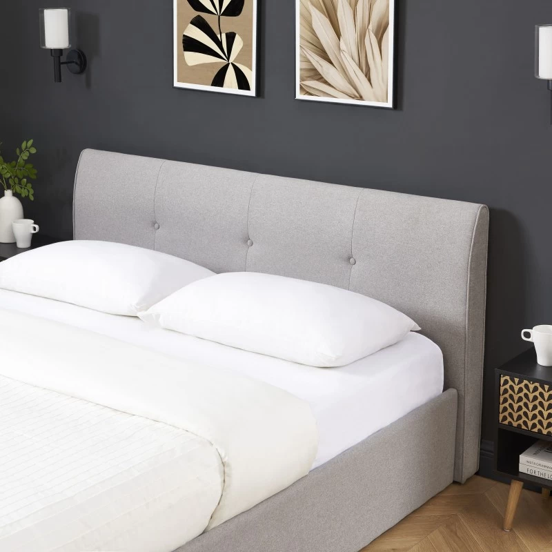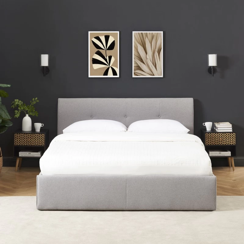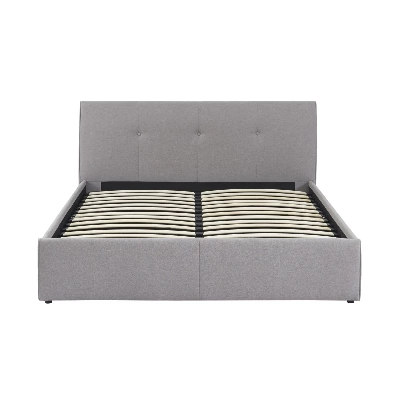 Lit Coffre SEGURO Tissu Gris Chiné 140×190 Sommier Inclus