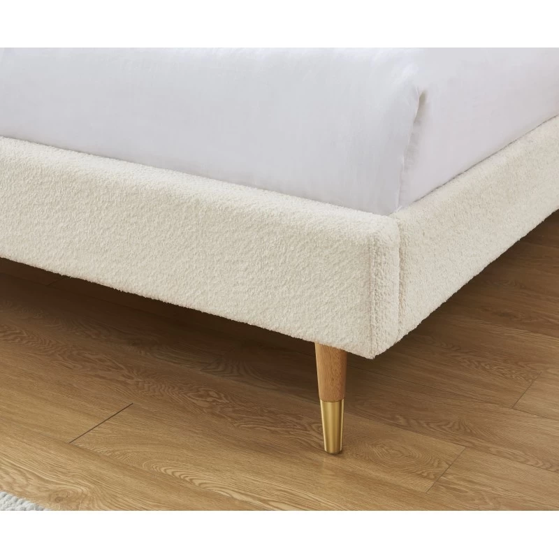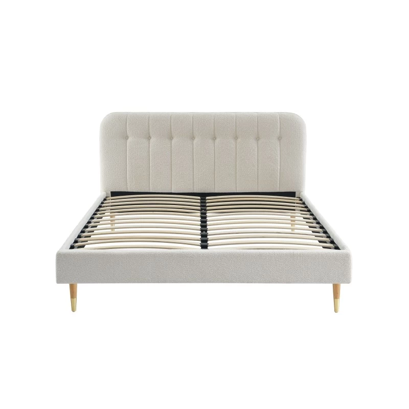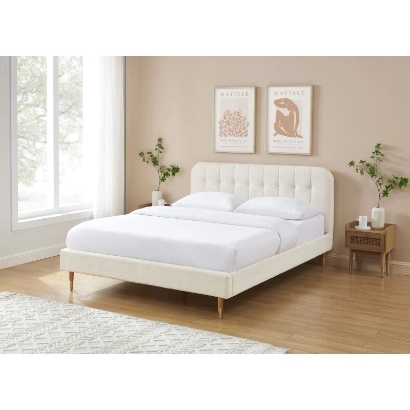 Lit Double ANDRE Tissu Bouclettes écru 160×200 Sommier Inclus