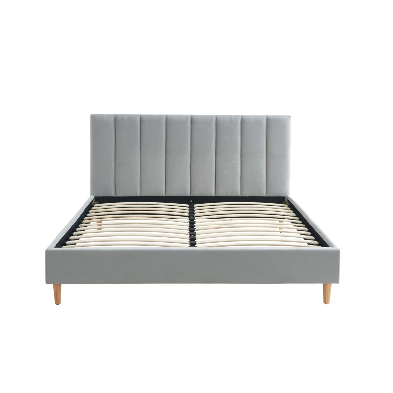 Lit Double MARIUS Tissu Gris Perle 160×200 Sommier Inclus