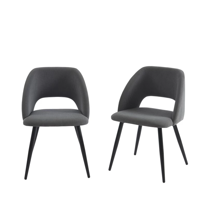 Lot De 2 Chaises VINTAGE Velours Côtelé Gris Pieds Métal Noir