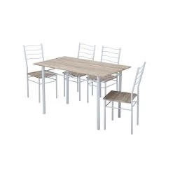 Ensemble Repas MACARON Effet Chêne Et Velours Gris 4 Chaises