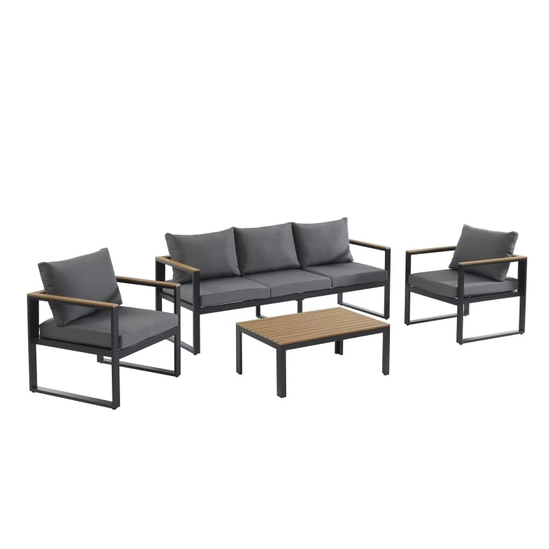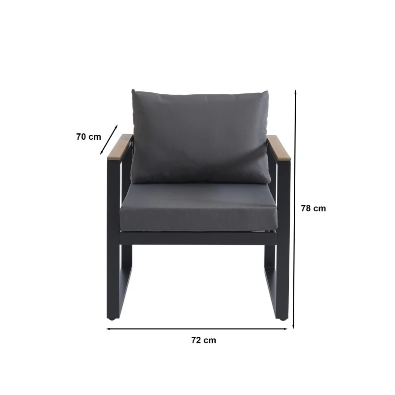 Salon De Jardin ELONA 5 Places En Aluminium Coloris Gris Foncé Avec Housse