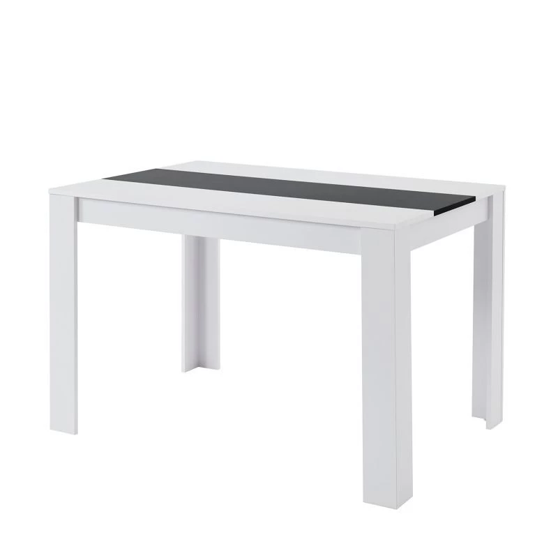 Table à manger DAMIA de 4 à 6 personnes – Structure en panneaux de particules – Revêtement en mélaminé coloris blanc et noir – Style et design contemporain – Dimensions : L120 x P80 x H75 cm.