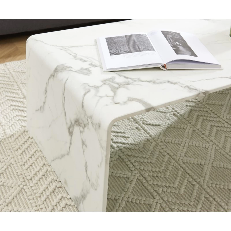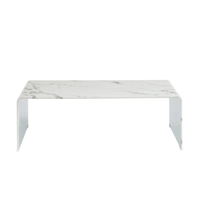 Envie d’une table basse qui sort de l’ordinaire ? Misez sur la table basse GINZA, entièrement en verre courbé effet marbre blanc. Elle donnera une vraie touche chic à votre intérieur, sans en faire trop grâce à son design minimaliste.