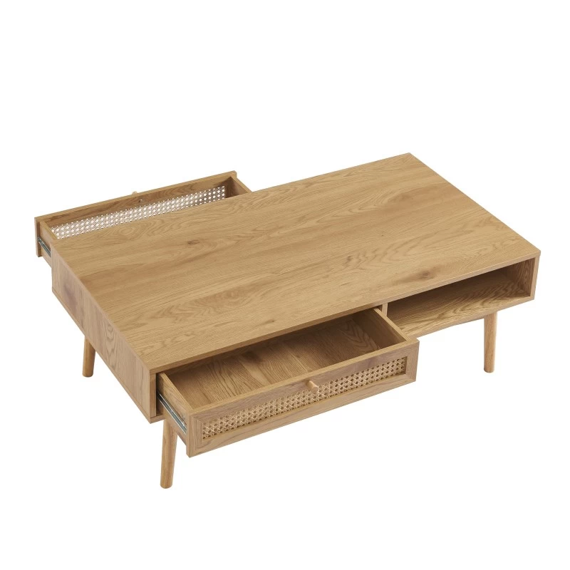 Table Basse INES Effet Chêne Et Cannage Rotin