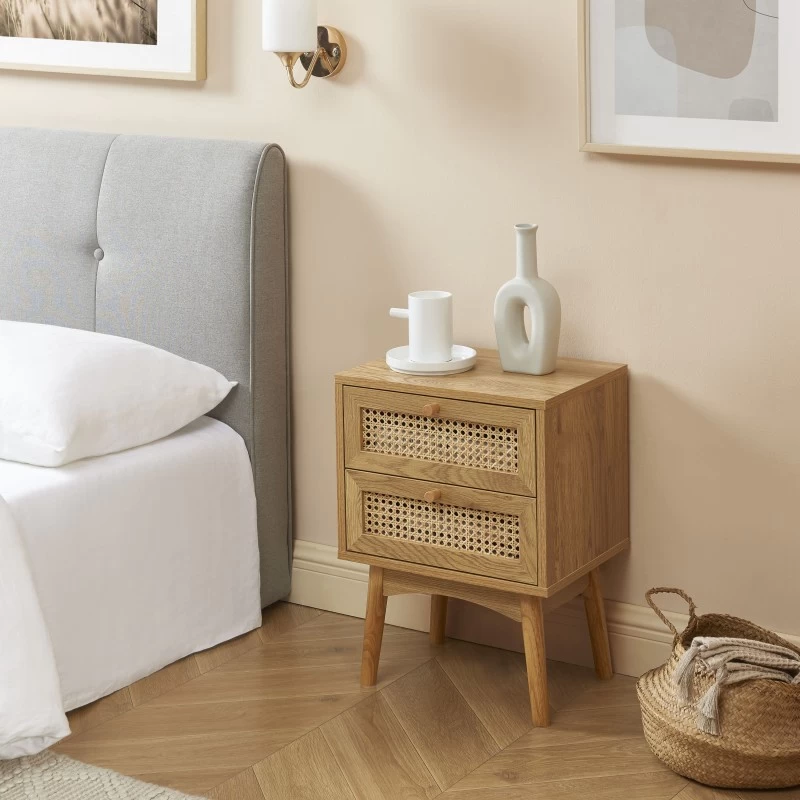 INÈS est un must-have pour une pièce au style rétro. Avec ses 2 tiroirs en cannage rotin circulaire, cette table de chevet ira à merveille dans votre chambre, lui apportant la touche vintage que vous aimez tant !